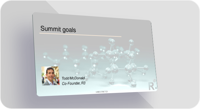 Summit goals Todd McDonald Co-Founder, R3 UNRESTRICTED 4