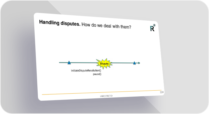 Handling disputes. How do we deal with them? Dispute initiateDisputeResolution() pause() UNRESTRICTED 124