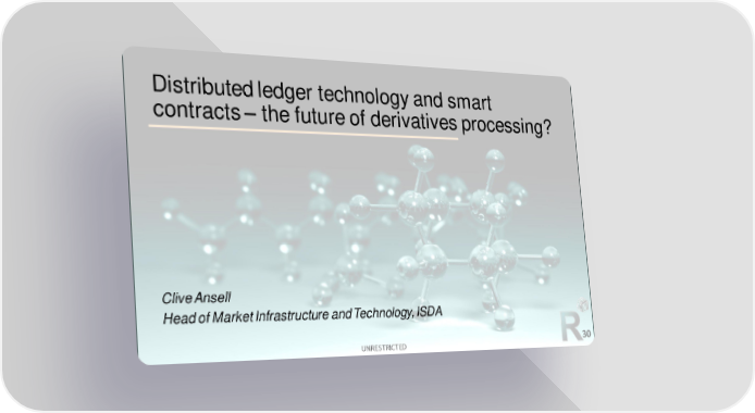 2nd R3 Smart Contract Templates Summit (All Slides) Page 30 Page 32Distributed ledger technology and smart contracts – the future of derivatives processing? Clive Ansell Head of Market Infrastructure and Technology, ISDA UNRESTRICTED 30