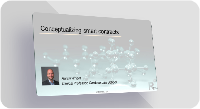 2nd R3 Smart Contract Templates Summit (All Slides) Page 135 Page 137Conceptualizing smart contracts Aaron Wright Clinical Professor, Cardozo Law School UNRESTRICTED 135