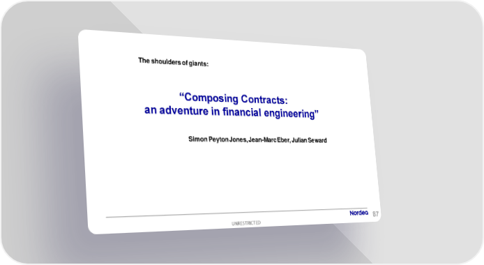 The shoulders of giants: “Composing Contracts: an adventure in financial engineering” Simon Peyton Jones, Jean-Marc Eber, Julian Seward UNRESTRICTED 87