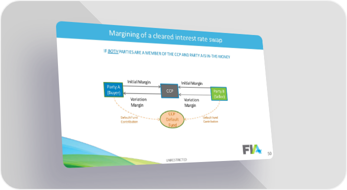 Margining of a cleared interest rate swap IF BOTH PARTIES ARE A MEMBER OF THE CCP AND PARTY A IS IN-THE-MONEY Initial Margin Initial Margin Party A CCP Party B (Buyer) (Seller) Variation Variation Margin Margin Default Fund CCP Default Default Fund Contribution Fund Contribution UNRESTRICTED 50