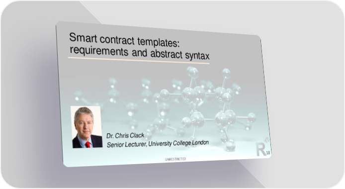 2nd R3 Smart Contract Templates Summit (All Slides) Page 18 Page 20Smart contract templates: requirements and abstract syntax Dr. Chris Clack Senior Lecturer, University College London UNRESTRICTED 18