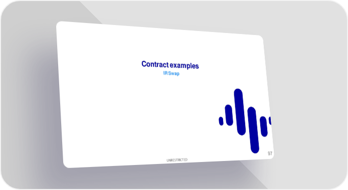 Contract examples IR Swap UNRESTRICTED 97 2nd R3 Smart Contract Templates Summit (All Slides) Page 97 Page 99