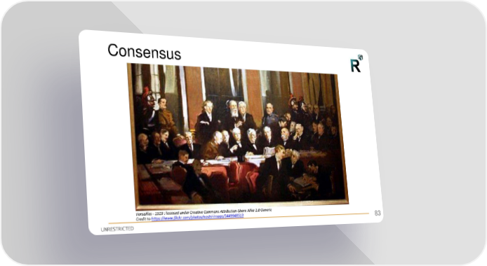 First R3 Smart Contract Templates Summit (All Slides) Page 82 Page 84Consensus Versailles - 1919 : licensed under Creative Commons Attribution-Share Alike 2.0 Generic Credit to https://www.flickr.com/photos/nostri-imago/3449948513 83