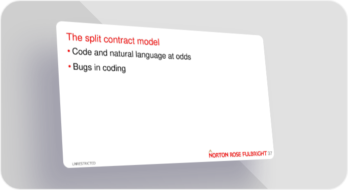 First R3 Smart Contract Templates Summit (All Slides) Page 36 Page 38The split contract model • Code and natural language at odds • Bugs in coding 37